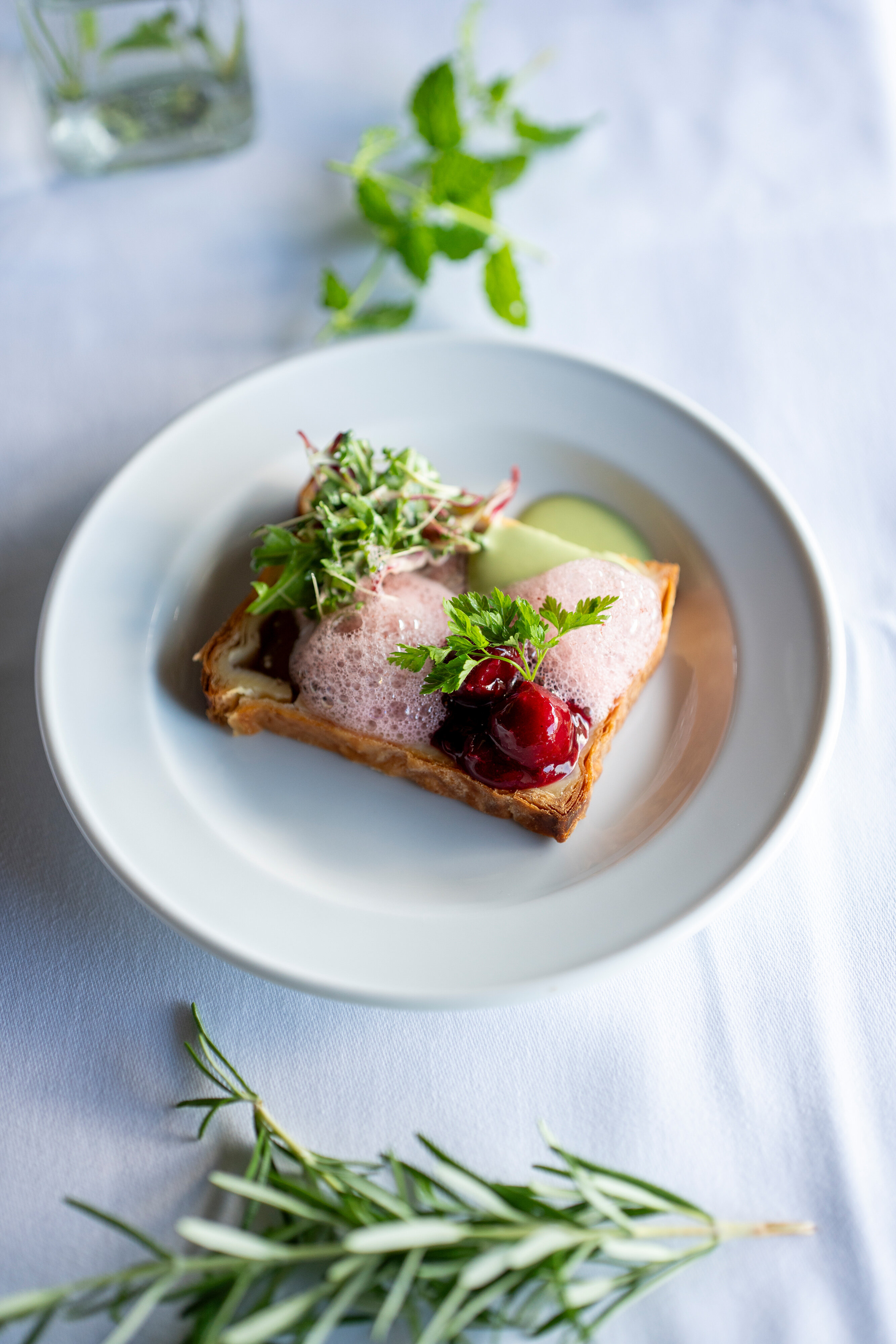 Paté en croute, Hauspastete vom Walser Milchkalb, geräucherter Schweinskopf, Pistazie & Bodenseekirsche