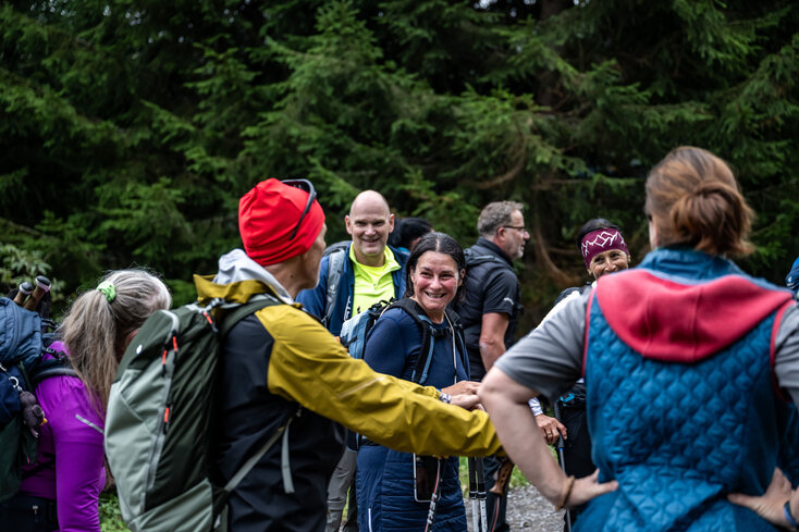 Wanderlustige im entspannten Gespräch miteineinander